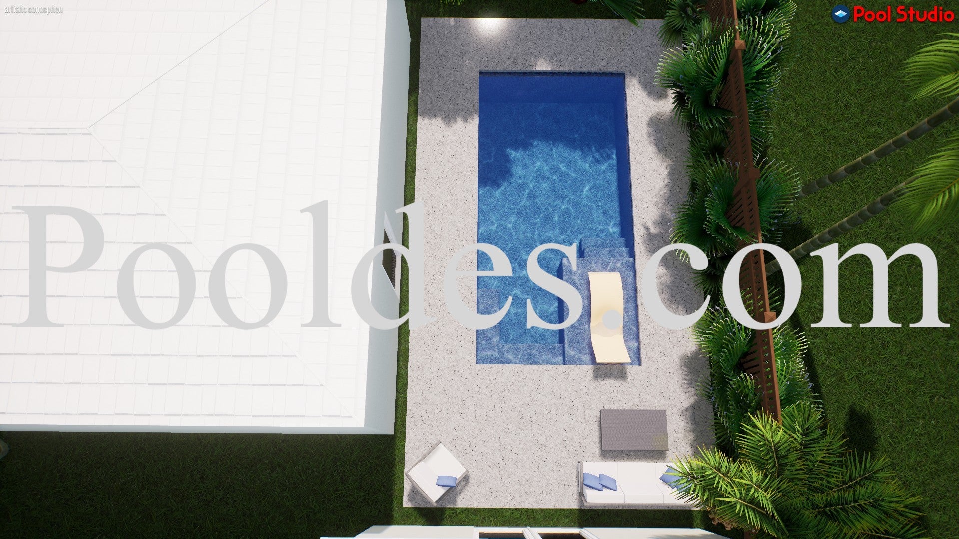 I created this custom pool rendering for a builder based on the specifications provided, survey, setback and access taken into consideration. The client wanted to include a bench seat and sun shelf to a plunge pool.